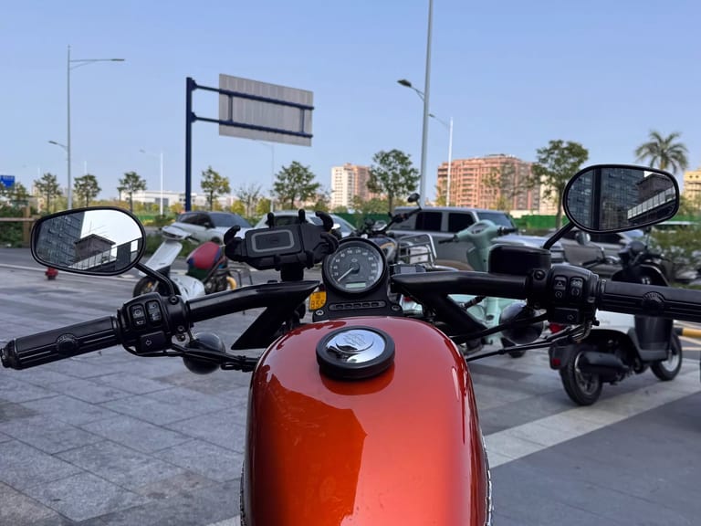 (2020), 13,000 km, good condition, looks great, with invisible paint protection film. Features engine guard, ape hanger handlebars, lowered rear suspension, heated grips, and phone mount.